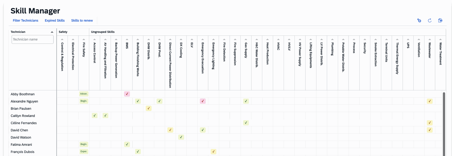 FSM Web StandaloneSkill Manager centralise la gestion des compétences et certifications des techniciens dans SAP Field Service Management, offrant aux superviseurs une vision claire et exploitable pour maintenir les qualifications à jour, assurer la conformité et aligner les compétences avec les missions à réaliser.